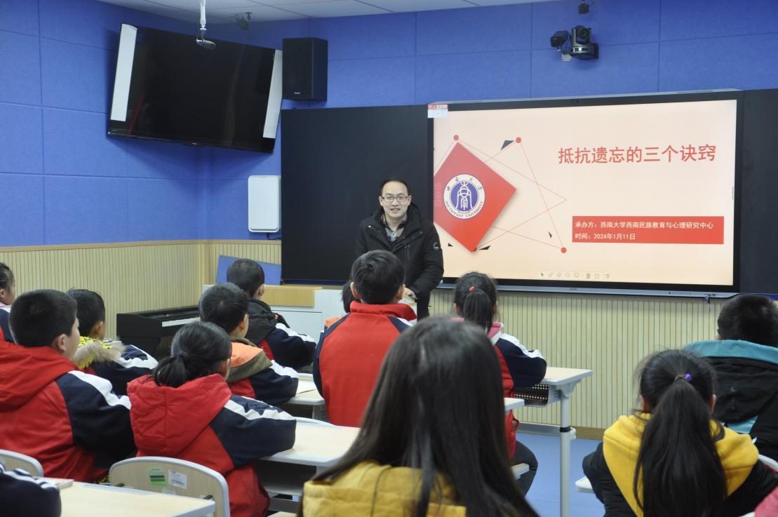 为深入学习贯彻习近平总书记关于儿童工作重要指示批示精神,贯彻落实党中央、国务院关于儿童工作重要决策部署,进一步提高农村留守儿童和困境儿童关爱服务质量,1月11日-12日,betway西汉姆联西南民族教育与心理研究中心(以下简称“中心”)组建“同心圆”寒假调研团队,赴四川省南充市营山县太蓬完全小学校开展“心系乡村,筑梦未来”乡村留守儿童志愿服务活动,以心愿清单收集、交流访谈、田野考察、图书捐赠、现场教学、综合实践活动等形式助力乡村教育,关爱留守儿童健康成长。