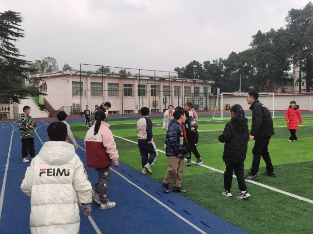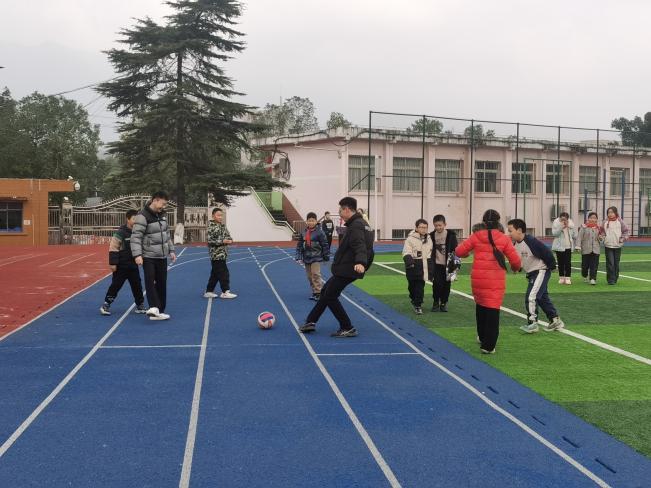 实践队成员在课间与孩子们一同展开了一场充满活力和乐趣的足球比赛。在绿茵场上,小朋友们欢快地奔跑着,尽情地享受着运动所带来的欢乐与自由。这样的活动不仅为乡村振兴注入了新的体育活力,也用满满的爱心和关怀助力孩子们的梦想成长,让他们在快乐的运动中学会团结合作,培养健康的身心。