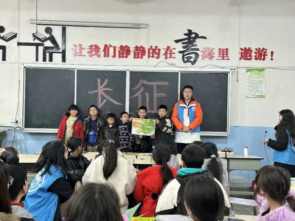 1月9日,实践队队员们将长征故事与自己所学的地理专业知识相结合,采用动画和视频的方式,向孩子们讲解长征路上的各种地形地貌以及特征,使其生动感受长征路上的艰辛,帮助小朋友们激发爱国之情,丰富地理知识,拓宽历史视野。小朋友们表示革命先烈们面对这样艰难的环境仍坚持不懈,奋勇向前,他们也要“好好学习,努力做对社会有用的人!”