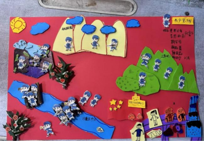 通过这一特殊的实践活动,同学们不仅展现了卓越的创意和团队协作精神,更加深刻地理解了革命先烈长征的艰辛,希望小朋友们能够在革命先烈的足迹中,汲取力量,将这份热爱国家、热爱历史的热情转化为实际的行动,为祖国的繁荣昌盛贡献自己的力量。