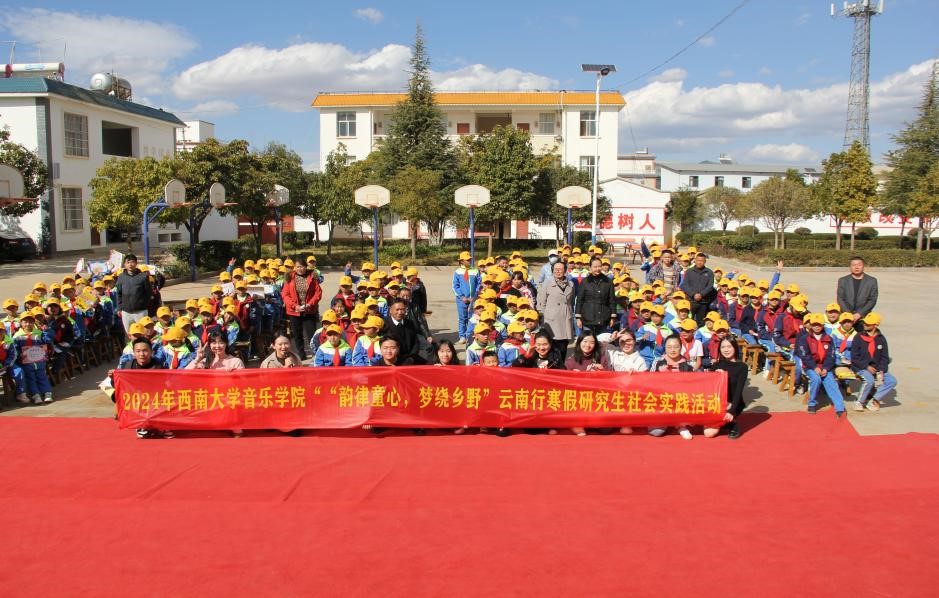 乡村振兴,文化先行。为全面贯彻落实党的二十大精神,推进乡村教育振兴不断取得实质性进展,用音乐助力乡村教育振兴,丰富乡镇贫困地区儿童假期生活,使新青年主动肩负起时代责任和使命担当。2024年1月15日,betway西汉姆联音乐学院开展以“韵律童心·梦绕乡野”为主题,以“浸润童心,以音传情”为口号的社会实践活动,在betway西汉姆联音乐学院副教授颜芬的带领下,8名研究生志愿者及相关工作人员前往云南省祥云县上赤小学开展音乐教学活动,此次活动引导广大青年研究生在音乐教学实践中深刻领悟并大力弘扬音乐教育精神,在音乐教学中传递情感与希望,在奋进坚守中践行初心与使命,点燃孩子们心中每一支闪耀着音乐希冀的微光。
