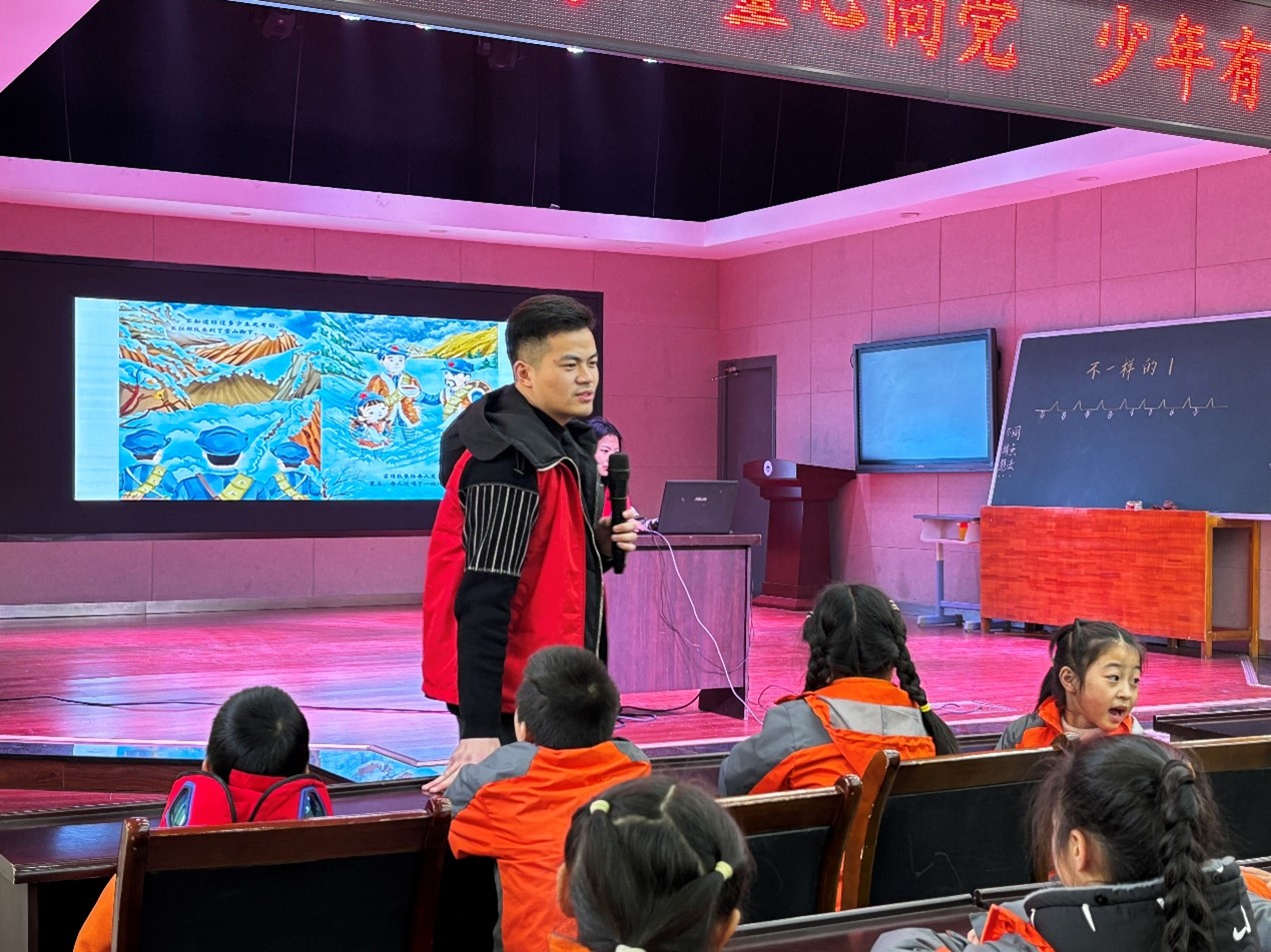 为进一步加强校园爱国主义教育,增强未成年人的爱国意识,1月8日下午“澄风破浪”实践队开展了红色宣讲活动。“澄风破浪”实践队成员孙静洁、豆潘郭等同学通过演绎绘本《长征路上的红小丫》,生动形象地展示了长征时期战士们坚信正义事业必然胜利、不怕任何艰难险阻、严守纪律、紧密团结的优良品质与精神。同学们充分运用儿童语言体系,向小学生们讲述了长征这一人类历史上的伟大壮举,让宝贵的精神财富代代相传。随后,团队成员向小学生们普及了“国庆节”的相关知识,带领小朋友们一起学习了我国的国歌、国旗、国徽。