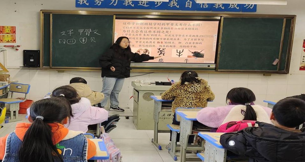 (图12:团队成员胥心谷上人文课“传承与启迪:有趣的甲骨文”)