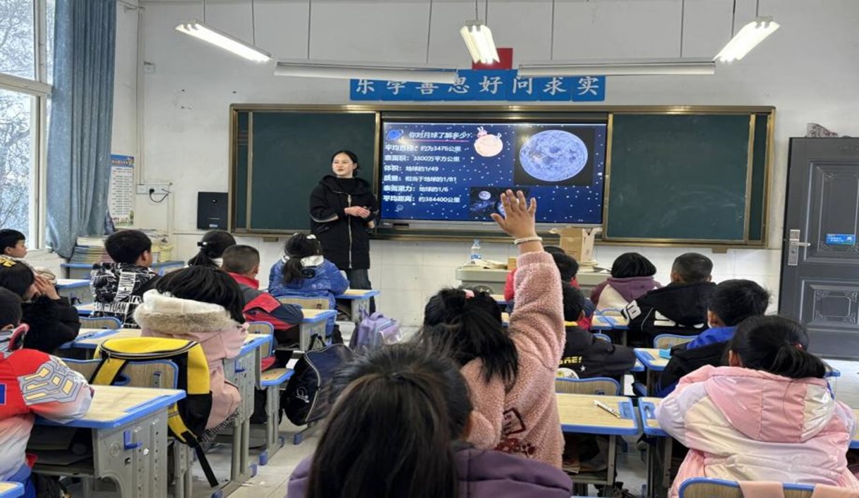 (图17:团队成员潘红上科普课“月球解锁,星辰探秘”)