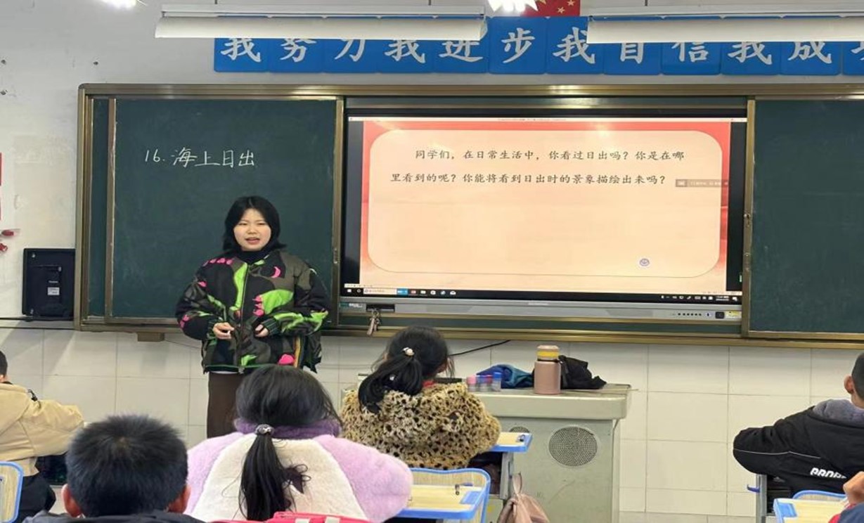 (图15:团队成员丁玫元上语文课“妙手写美景,巧手著奇观”)
