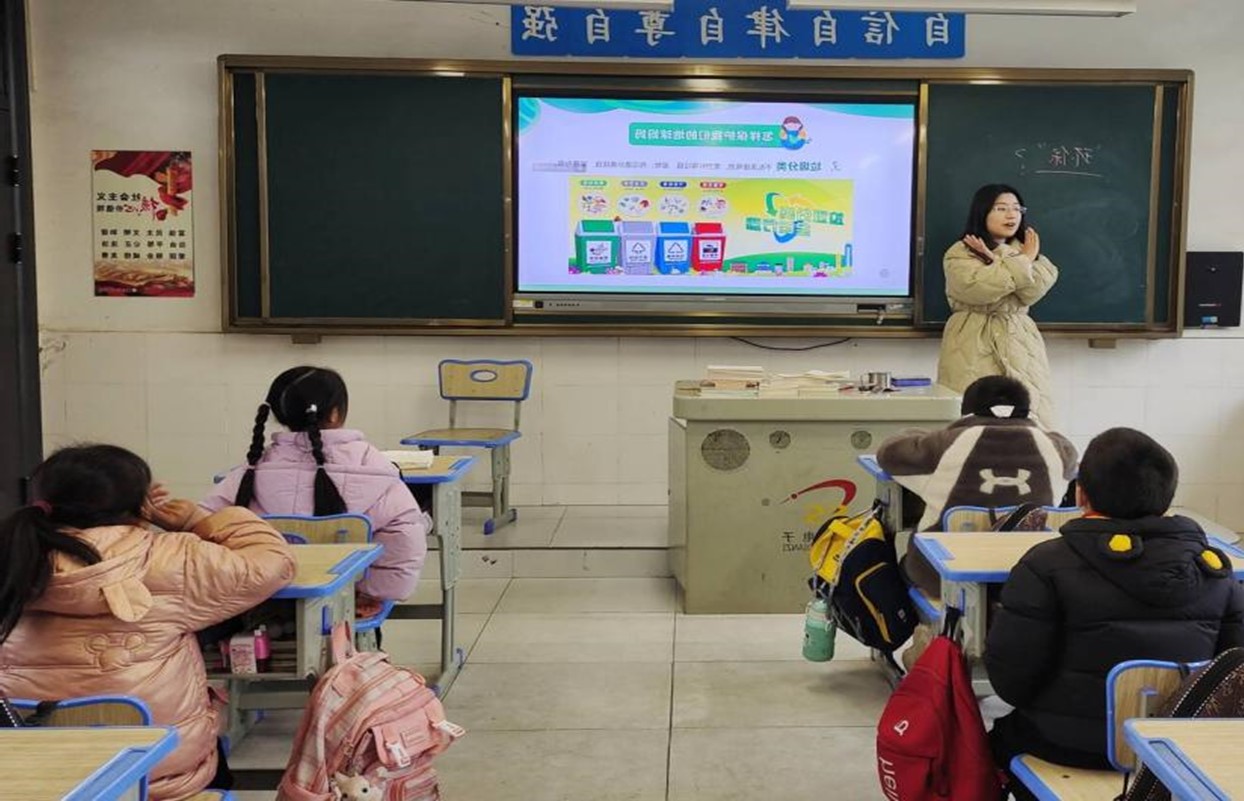 (图10:团队成员黄诗婷上科普课“环保小卫士”)