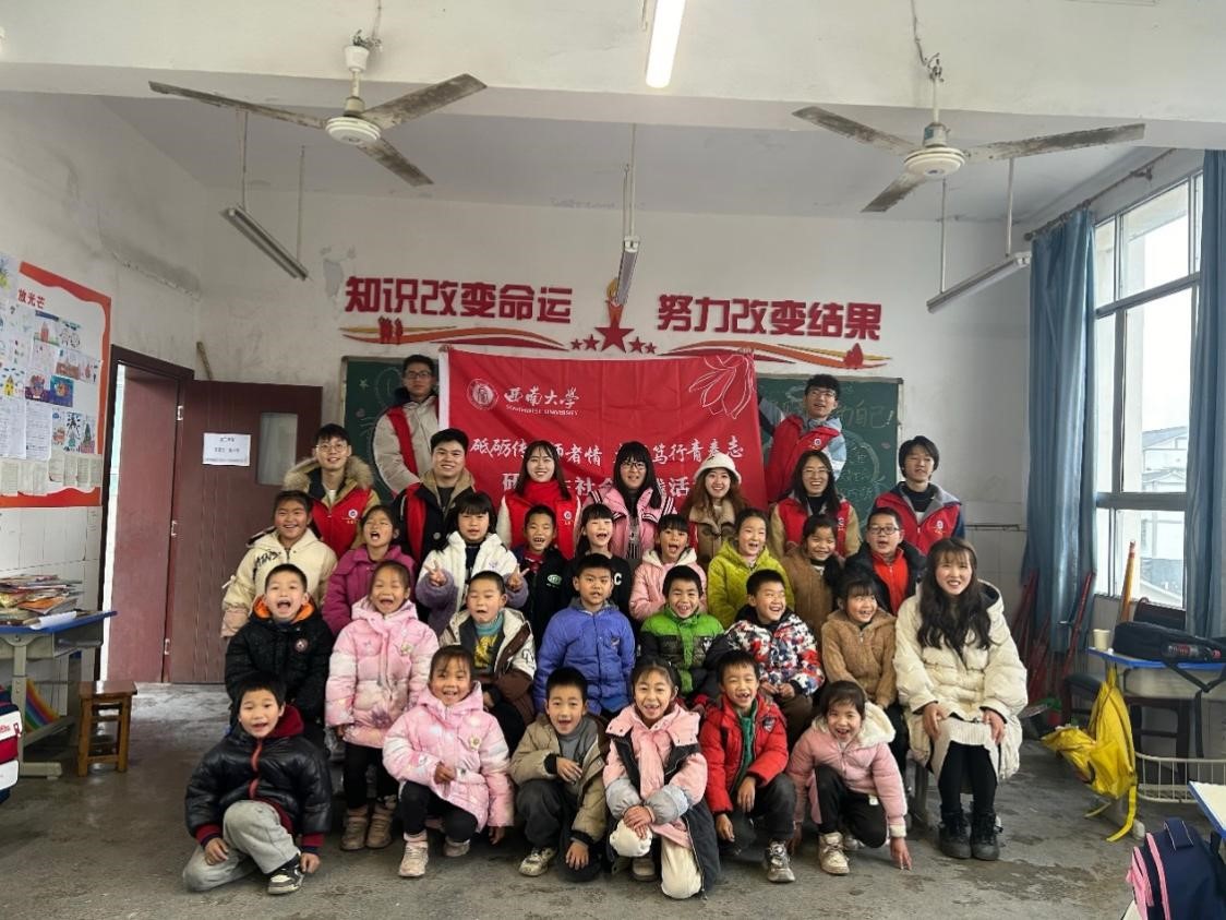 砥砺传承师者情,奋楫笃行青春志。为深入学习贯彻习近平新时代中国特色社会主义思想,全面贯彻落实党的二十大精神,聚焦乡村教育,助力乡村振兴,研究生院 党委研究生工作部组织学校广大研究生开展“西大硕博乡村行”2024年寒假社会实践活动。活动以现状调研为主线,以乡村小学为支撑,以支教形式为依托,引导广大研究生在实践中深刻领悟、大力弘扬教育家精神,在学思践悟中坚定理想信念,在奋发有为中践行初心使命,努力成为堪当民族复兴重任的时代新人。本次活动共组建36支校级实践团队、百余支院级实践团队,动员千余名研究生积极为当地儿童提供思想引导、学业辅导、生活指导、心理疏导等志愿服务,通过问卷调查、家访等多种形式充分了解农村留守儿童生活现状,广泛开展乡村支教、理论宣讲、文化传播、社会调查、志愿服务等形式多样、内涵丰富的社会实践活动。
