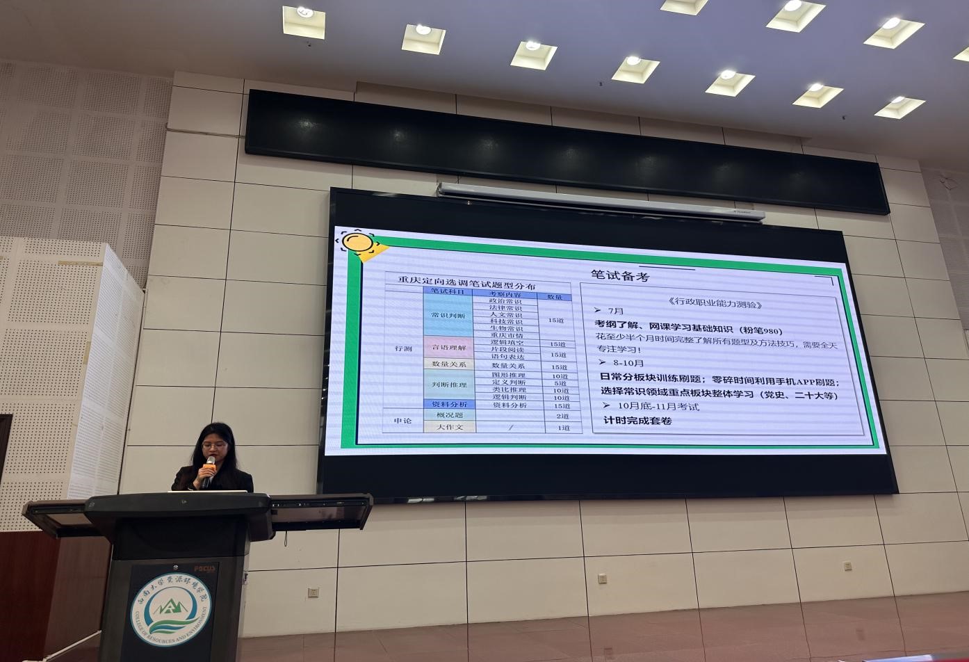 2021级土地资源管理专业研究生左钰瑶同学就个人参加公务员考试的经验进行了详细分享。她提供了关于如何选择合适的公务员岗位、备考时间安排以及行测和申论的备考策略。她特别指出在公务员备考过程中,重要的是系统学习理论基础并通过多样化的网络课程找到适合自己的学习方法。在做题时,注重质量而非数量,并通过总结小题中的规范词汇来提高,这些都是提升答题质量的关键。