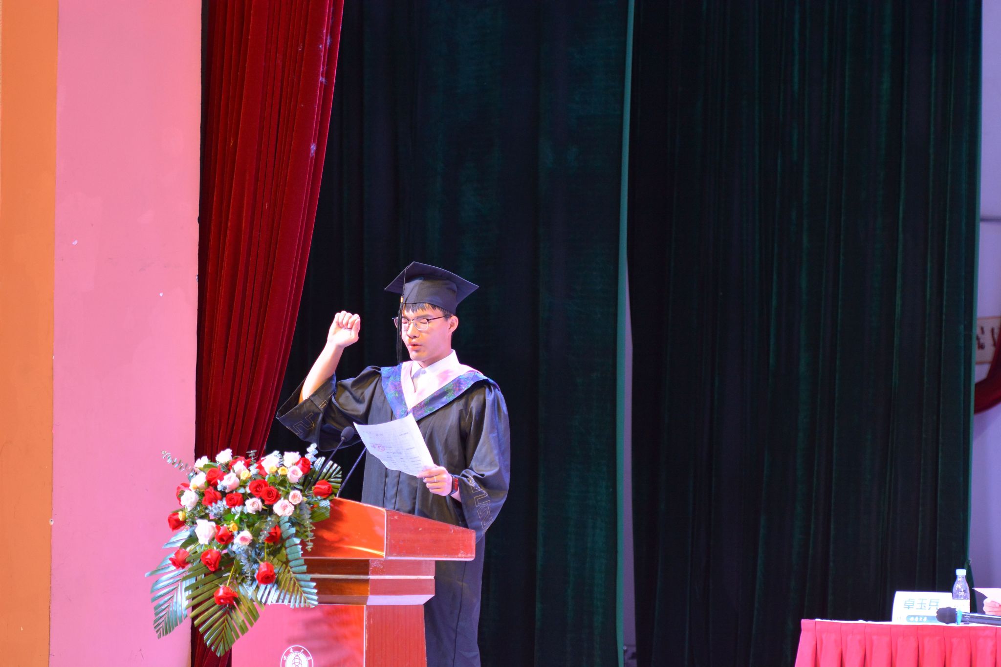 活动开始前,毕业生代表共同演绎青春快闪节目。随后,毕业典礼暨授位仪式在庄严的国歌声中正式拉开帷幕。