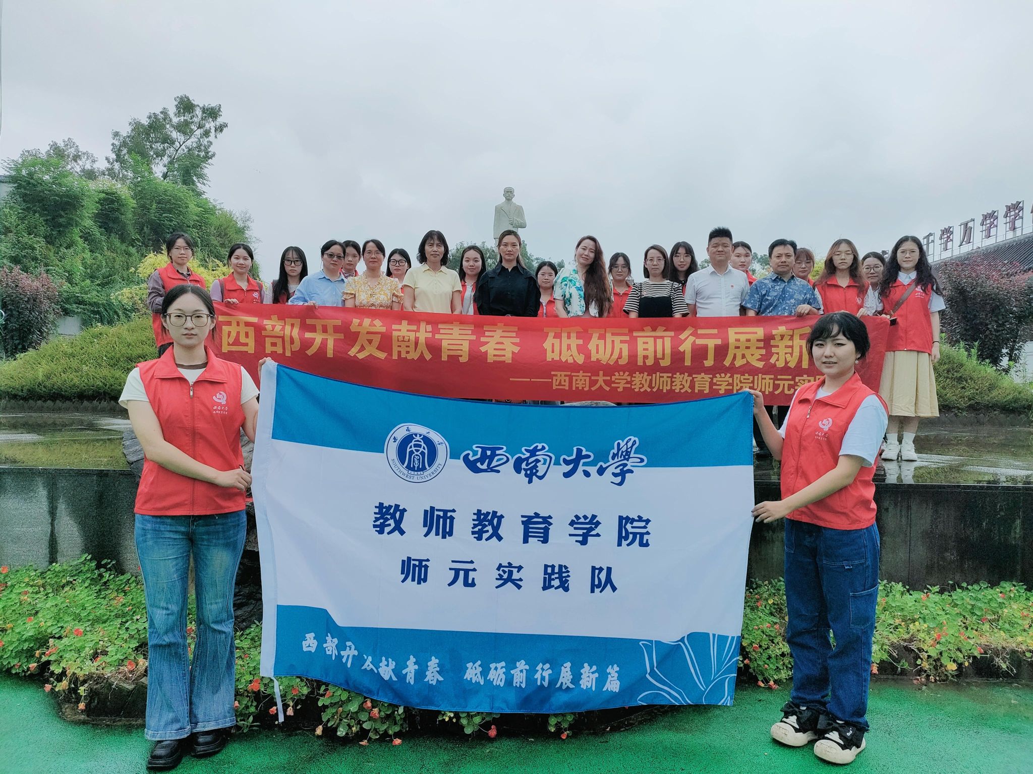 图1:教师教育学院师元实践队全体成员及带队老师与合川育才学校领导在学校合影