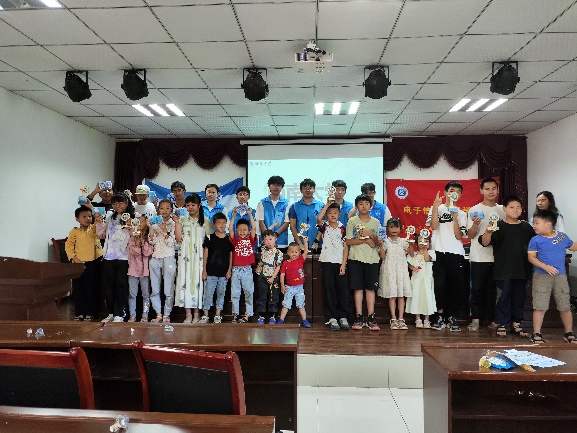 图18:小朋友们拿着最后的作品成果与实践队员们合影留念