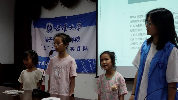 随后,实践队员结合学院专业特色为周家村托管所的小朋友开展了精彩的课堂活动。为进一步激发学生对科学的好奇心和探索精神,培养他们的动手能力,实践队员黄舟平为小朋友们开展了一堂生动的物理知识科普课。课上,黄舟平用风趣幽默的语言和生动形象的示范,讲解了日常生活中常见的物理现象和基本原理。他还通过趣味风扇实验,让小朋友们亲自动手操作,体验物理现象的奇妙。孩子们在互动中不仅学到了新的知识,还对科学产生了浓厚的兴趣。