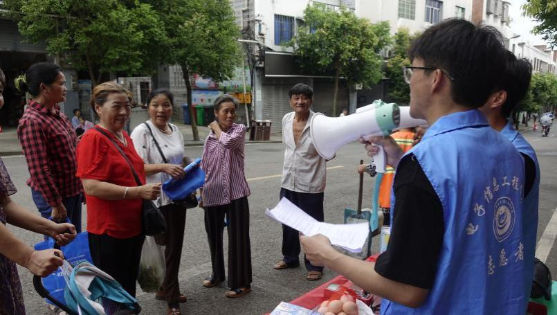 图14:实践队员柴荣和冯平正在进行“三防”宣讲