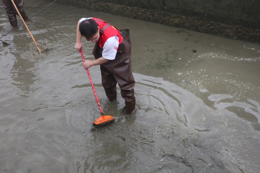 图10:实践队成员南洲洲清理鱼塘