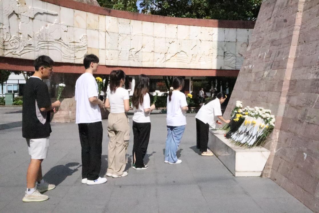 图9:实践队队员为革命烈士敬献花束