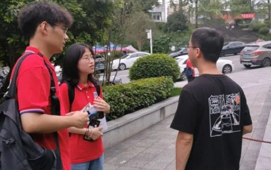图9:实践队员于华蓥山广场采访当地居民