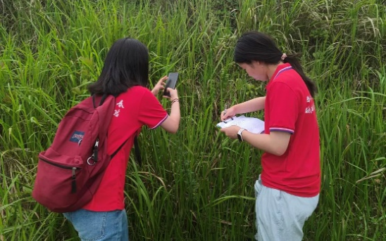 图6:实践一组队员记录天池湖植物特征