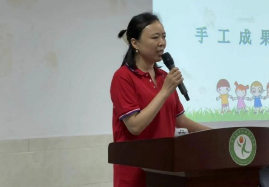 图13:前锋小学同学展示树叶贺卡作品
