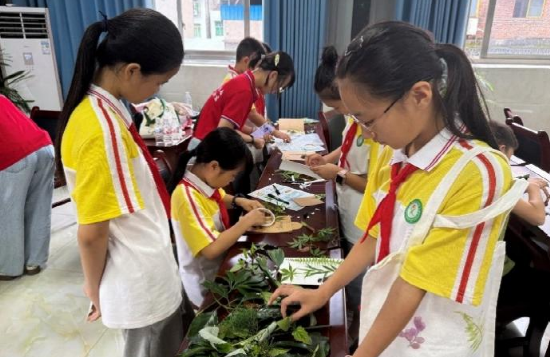 图12:前锋小学同学们参与植物拓印活动