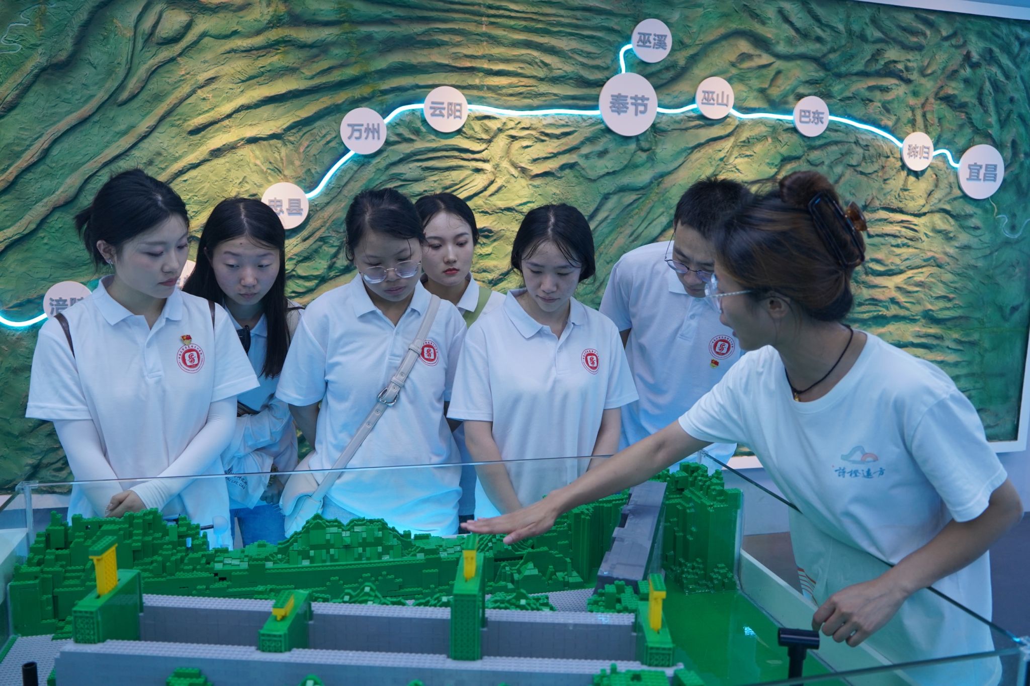 “以文塑旅,以旅彰文”,奉节县依托独特的自然优势和深厚的历史文化底蕴,围绕“三峡、人文、生态”三方面,深度推进文旅融合。实践队深入体验了“诗橙远方研学大本营”并参观了夔州博物馆。“诗橙远方研学大本营”以奉节和三峡地域文化特色为内容,借助物联网+AI的全流程管理系统,打造出十八个主题鲜明的研学空间,将诗橙文化融入研学旅游产业。夔州博物馆承载了夔州的发展脉络和历史积淀,将文明薪火相传,实践队在探寻文物古迹中感受到了三峡文化的浓厚底蕴,进一步增强了文化自信。