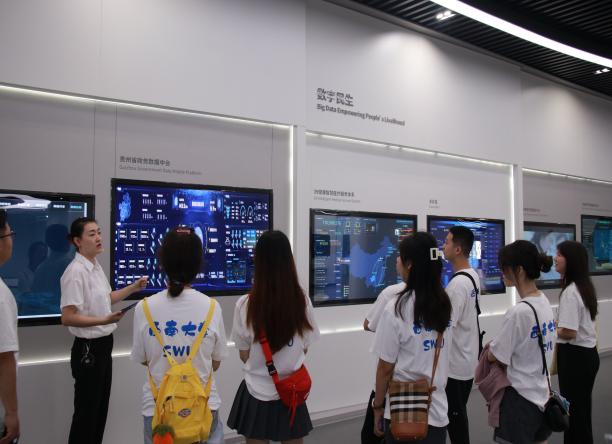 7月17日,实践队走进国家大数据(贵州)综合试验区展示中心,深入了解贵州贵阳大数据产业发展。贵州大数据综合试验区展示中心位于贵阳市观山湖区,内设数字中国、数化万物、云上筑梦、未来已来和智慧体验五个展区,让人们真切感受以互联网、大数据、人工智能为代表的新一代信息技术带来的影响。