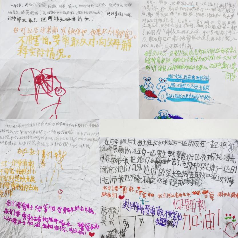 图5:孩子们相互写下许多防欺凌的方法和暖心的话语