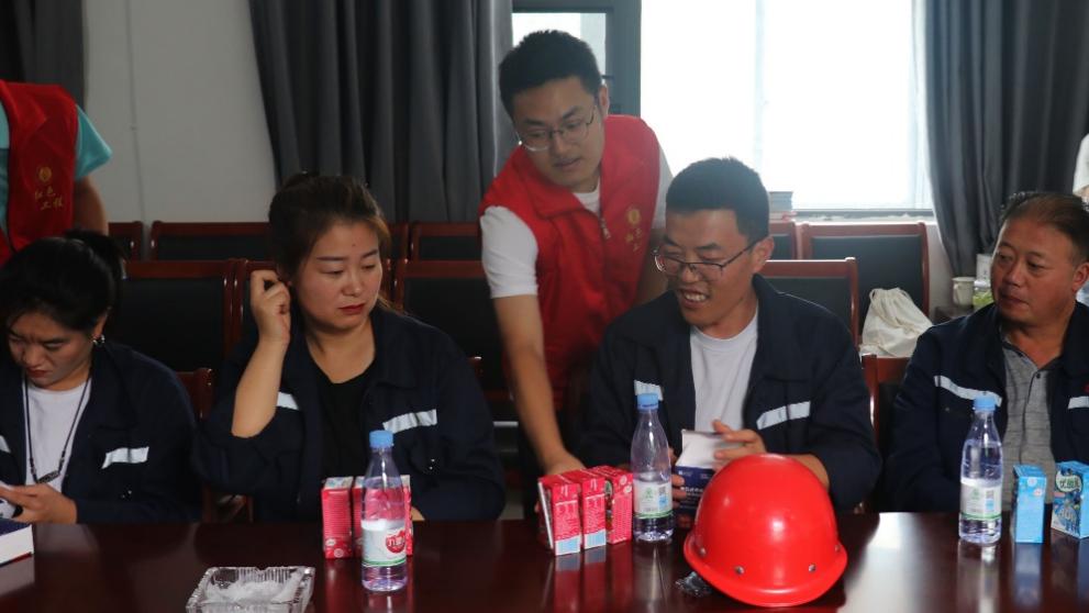 图4:实践队副队长邓艳河向一线员工分发慰问品