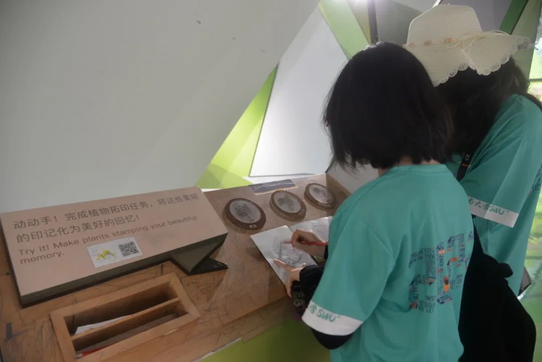 图16:实践队队员在自然教育中心体验植物拓印