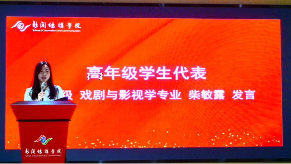 2022级戏剧与影视学专业硕士研究生柴敏露作为高年级学生代表,以自身读研历程为例,鼓励新同学们积极拓展学科视野、提升综合实践能力。她呼吁大家秉持勇气、坚定选择、不断探索。