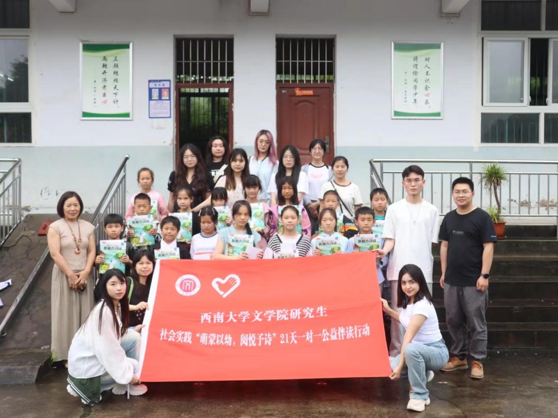 为积极响应国家乡村振兴、文化振兴战略,推动书香社会建设,弘扬志愿者“奉献、友爱、互助、进步”的精神,帮助重庆市乡村地区学生养成阅读习惯、提升阅读能力,betway西汉姆联文学院研究生会组织开展第七届“萌蒙以幼,阅悦予诗”21天一对一公益伴读行动。6月28日,在文学院研究生辅导员凌飞的带领下,15名研究生志愿者及相关工作人员前往重庆市合川区清平镇川心小学,开展了伴读行动启动仪式。