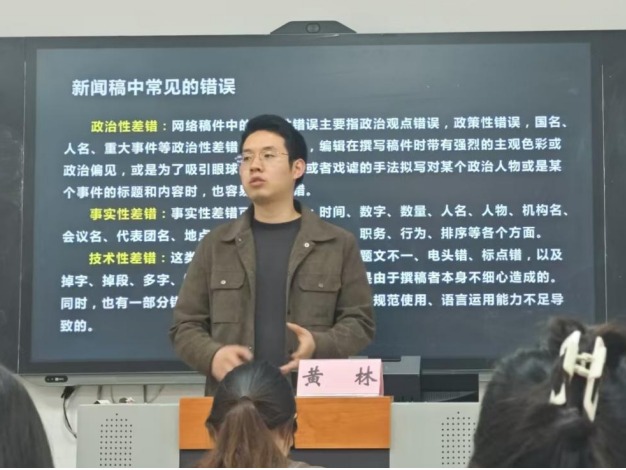 为精进研究生会成员的新闻写作能力,提升学院新闻的质量和传播效果,黄林老师对参会人员进行了新闻稿写作培训,详细讲解了新闻稿标题的选取、导语的撰写、正文的组织结构等方面的内容,强调了新闻稿的格式要求、语言表达的准确性以及注意事项。